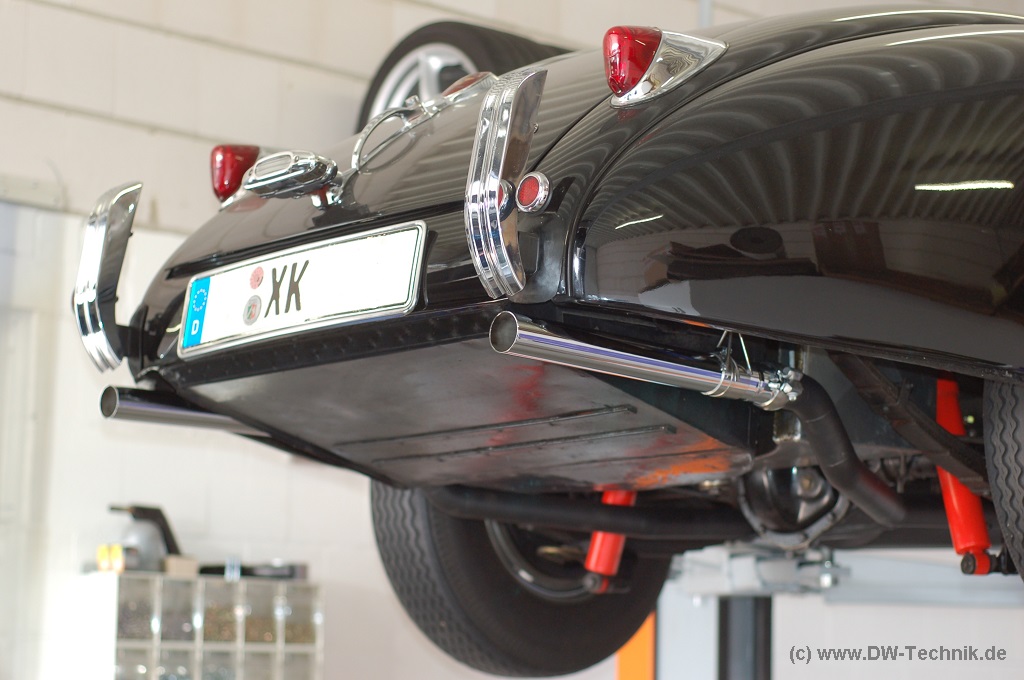 Uns hat es Spaß gemacht für diesen alten 6 Zylinder eine neue Anlage herzustellen, Originalität ab Krümmer wurde zugunsten der nichtrostenden hochlegierten ChromNickelStähle außer Acht gelassen. Die Endrohre sollten verchromt werden, denn das war früher so