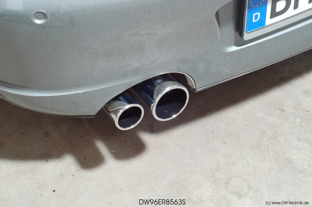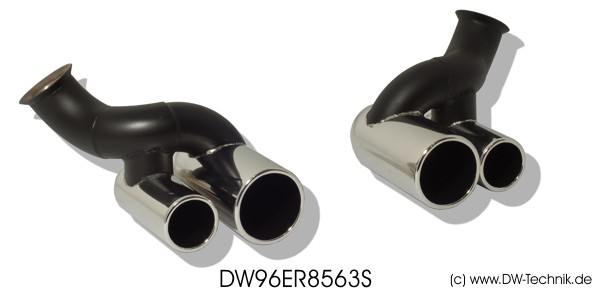 Endrohresatz mit 2 Endrohren je Seite, je85 u. 63mm, mit oder ohne Kragen, wird in poliertem Chromnickelstahl geliefert.